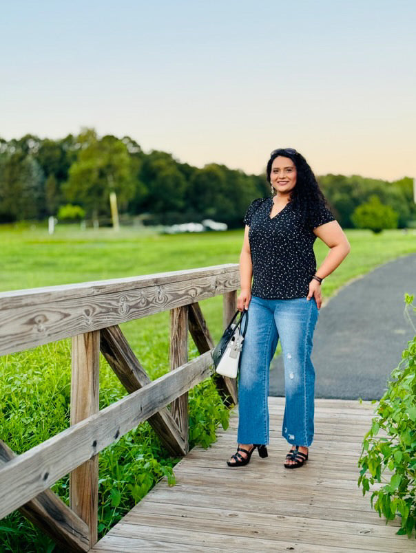 Stepped Waist Hem Rolled Straight Jeans